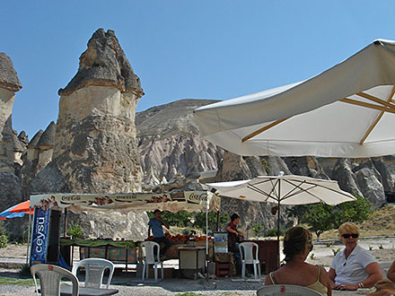 カッパドキア キノコ岩とパラソル ↑画像クリックで拡大