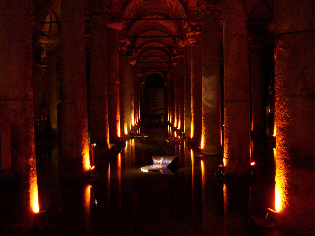 地下宮殿と呼ばれている建造物は実はローマ時代に造られた貯水庫なのだ。地下空間は奥行き143メートル、巾65メートル、高さ9メートル。
