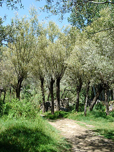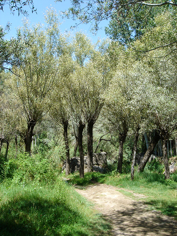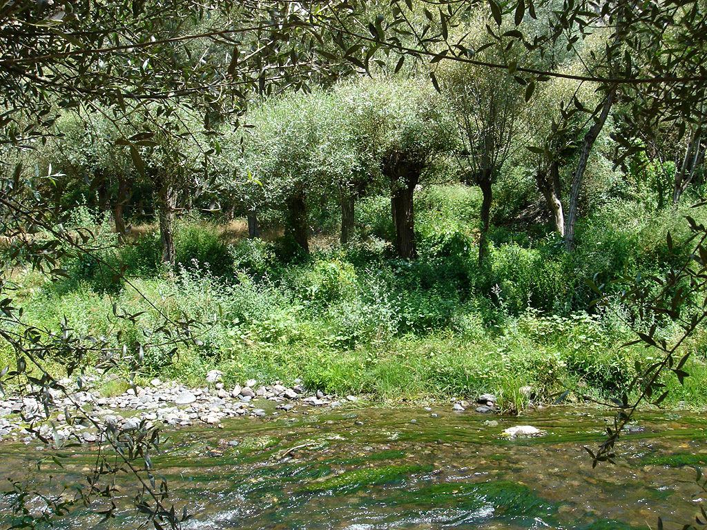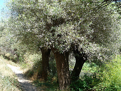 小川のほとりを歩いているときでも、枝を剪定されたオリーブの木を見かけた。