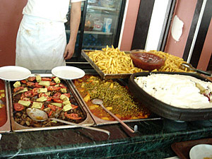 ここはカフェテリアだった。私たちは料理のカウンターの横で、一列に並ばなければならなかった。