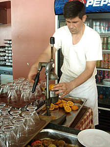 そこで私はジュース絞り器の前で、従業員にオレンジジュースと乳酸飲料を一杯ずつ頼んだのだが、その場で支払いを要求された。飲み物は追加料金がいるのだろう。