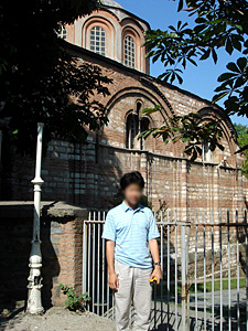 警備員は英語ができないが、腕を上げて坂道の上を示し、私たちを追い払った。教会の丘の上側の入口に戻るようにと教えたかったのだろう。
