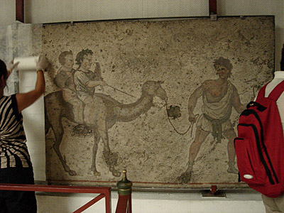 一枚の石板の表面には、一匹のラクダが描かれていた。ラクダの上には肥った二人の子供が跨がっている。ラクダの手綱を引いているのは、肩をはだけた白い服の、多分ローマ時代の若い男性だ。