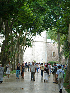 よく考えれば分かることだがその時は通れないと思い込んで、路面電車(トラム)の通りを歩いて行った。考古学博物館に続く坂道を歩いて、宮殿の第一庭の北門に着いた。