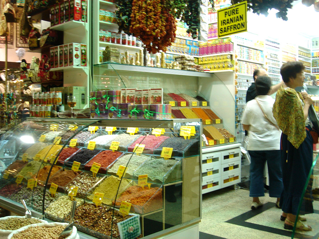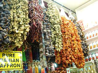 赤い唐辛子、黄色いサフランなど。どの香辛料を買ったら良いのか分からないでいると、外国の観光客の買い物の好みを分かっている一人の店員が、いろんな種類の香辛料が小袋に包装してあるものを紹介してくれた。