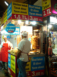 私は見る物を虜(とりこ)にするような食べ物を見ていて、トルコで一回食べ物に当たったので、買いたくても買う勇気がないことを残念に思った。